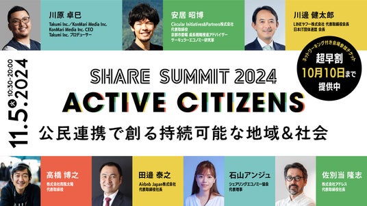 超早割チケットは10/10まで 「SHARE SUMMIT 2024- ACTIVE CITIZENS 公民連携でつくる持続可能な地域&社会」 開催概要