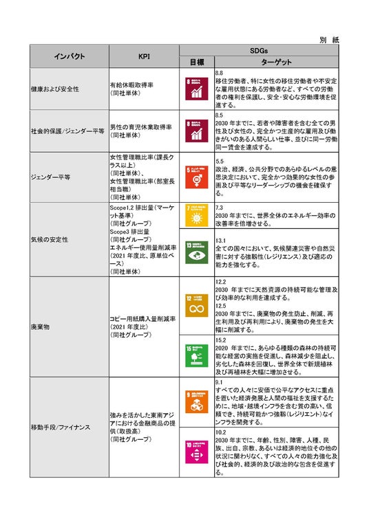 また、株式会社日本格付研究所(JCR、※4)から本件評価にかかるポジティブ・インパクト金融原則への適合性、および環境省のESG 金融ハイレベル・パネル設置要綱第2項(4)に基づき設置されたポジティブインパクトファイナンスタスクフォースが纏めた「インパクト ファイナンスの基本的考え方」との整合性についての第三者意見書を取得しています。