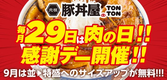ワンズトライン株式会社(本社:大阪市北区芝田2丁目3番16号、代表取締役:山内仁)が運営する、北海道・帯広伝統の豚丼が人気の「元祖豚丼屋TONTON」では、毎月29日に肉の日感謝デーを実施します!