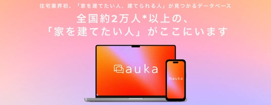 また、こうした現代の価値観にマッチする利便性の高い家づくりを推進するとともに、住宅メーカー・工務店様の集客や成約におけるビジネス課題を的確に捉え、全国約2万人*が登録する住宅業界向けユーザーデータベースでその解決を図ります。aukaのユーザーデータベースなら、あなたの会社にぴったりの顧客に絞ってアプローチすることが可能。成約率も顧客満足度も高い商談をご提案します。