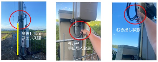 太陽光発電施設のケーブルは、手の届く位置にむき出しになっており、犯行がしやすくなっています。