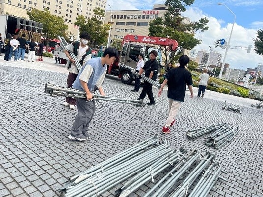 前日の会場設営からスタッフとしての活動を実施。実行委員会の方と連携しながら、イベントを安全に実施できるように準備を行いました。