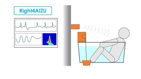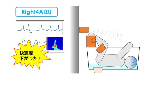 浴槽に設置したセンサーが受け取った心電信号(ECG)をベースに、独自開発した快適度の指標を用いて心身の快適状態を判定します。快適度が低下した際は、音やモニター表示などでお知らせできる仕組みです。また、浴槽の水栓を抜き溺れるリスクを下げることも可能です。