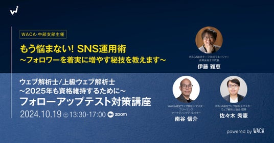 【ウェブ解析士協会】2024/10/19(土)13:30~17:00 もう悩まない!SNS運用術~フォロワーを着実に増やす秘技を教えます~&フォローアップテスト対策講座