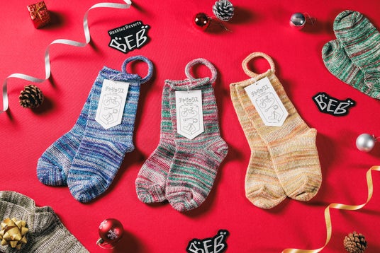 自転車をこいで靴下をつくるマシーン「チャリックス by SOUKI」が「TAMARIBA」に登場。「チャリックス」は、今は使われなくなった靴下の編機をアップサイクルし、自転車と融合させた機械です。機械だけではなく、靴下を編む糸もアップサイクルで染められたものを使用します。茨城県を拠点に活動する「futashiba248(フタシバ)」がつくる、農業廃棄物から抽出された染液で染められた糸を使って靴下づくりを体験することができます。完成した靴下を寝る前にドアノブにかけておくと、朝起きた時に何かいいことがあるかも...?