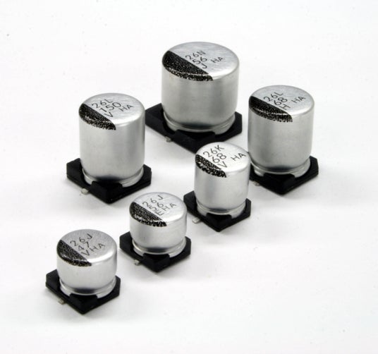 新製造棟で生産するハイブリッドコンデンサは、低いESR特性を持ち、安定した温度特性や高い耐熱性、長寿命を実現したアルミ電解コンデンサです。