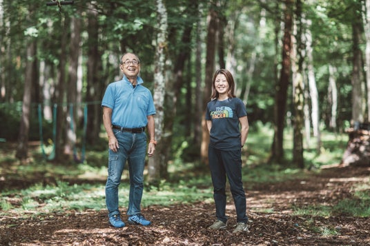木曽町・開田高原の森のガイド田上さん、中島さん(おんたけウェルネスラボ)