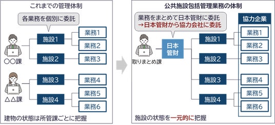 導入にあたり、2024年6月より公募が実施され、審査の結果、日本管財株式会社が委託候補事業者に選定されました。業務期間は、2025年4月1日から2030年3月31日までを予定しており、庁舎や市内の学校等55施設の管理を実施いたします。