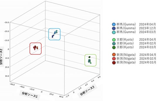 (※群馬・京都・新潟の日本酒を使って鑑定。原産地が近いものは図中の近い場所にプロットされる)