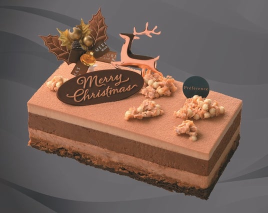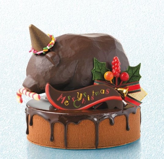 毎年人気の大きな熊型チョコレート「キボリーヌ」をあしらったクリスマスケーキ。今年は定番の「キボリーヌ オ ショコラ」がクリスマスパーティの装いに。しっとりと蒸し焼きにしたガトーショコラになめらかなガナッシュ、すっきりとした甘さのチョコレートムースを重ねたチョコレート尽くしの一品です。