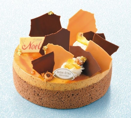 ジャン・ポール・エヴァン氏に師事しフランス内外の一流店で研さんを重ねた斉藤美穂氏が手掛ける、チョコレートのクリスマスケーキ。森のクリスマスをイメージしたチョコレートムースの中には、ローストしたクルミのキャラメルクリームとバニラムースの2層をサンドしています。