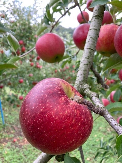 10月上旬から収穫でき、甘味、酸味のバランスが良く、名前の由来となった秋の夕陽の様に全面が濃い赤色になります。シャキシャキ歯ざわりが特徴のりんごです。
