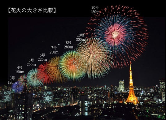 花火の大きさって?上空で開く花火の大きさは、きっと想像していたよりも大きいのではないでしょうか。