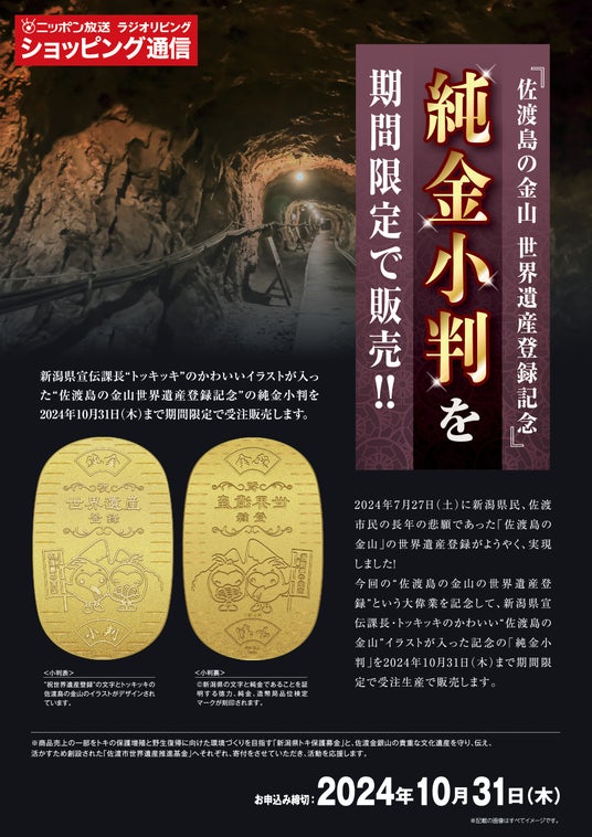 [ 「“佐渡島の金山 世界遺産登録記念” トッキッキ純金小判」 発売概要 ]