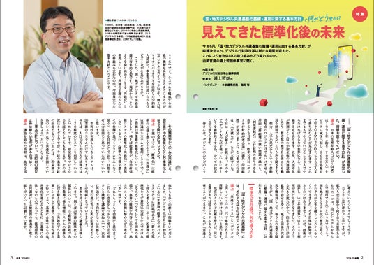 本号では、内閣官房デジタル行財政改革会議事務局の浦上哲朗参事官へ「国・地方デジタル共通基盤の整備・運用に関する基本方針」についてインタビューしたほか、先進事例として書かない窓口を手始めに窓口改革を進める3市(栃木県宇都宮市、東京都清瀬市、新潟県長岡市)の取り組みや、公会計情報の積極活用において国内屈指の先進例と称される福島県田村市の取り組み、などを紹介しています。