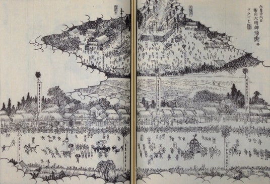 布川大明神帰輿並びにツクマヒ図(『利根川図志』3巻)