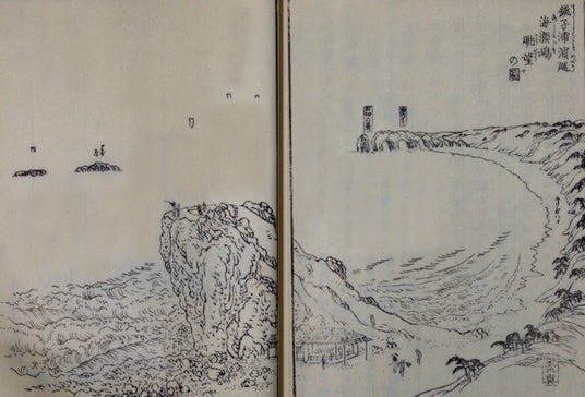 銚子浦濱巡海獺(あしか)島眺望の図(『利根川図志』6巻)