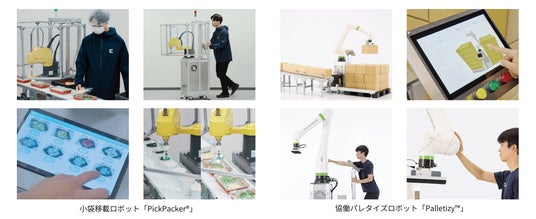 各展示会では、段ボール等の積み付け作業を自動化する小型協働パレタイズロボット「Palletizy(パレタイジー)」及び、食品工場での大変な繰り返し作業を自動化する小袋移載ロボット「PickPacker(ピックパッカー)」を展示します。