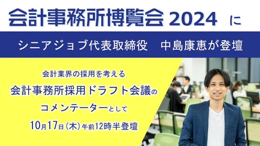 シニア転職支援の(株)シニアジョブ(本社:東京都新宿区/以下、シニアジョブ)の代表取締役・中島康恵が、株式会社ゼイカイが主催する「会計事務所博覧会2024」に登壇します。2024年10月17日・18日の2日間の開催の中で、17日12:30より開催される、会計事務所の架空の求職者について誰を採用したいか入札する「会計事務所採用ドラフト会議」に、中島はコメンテーターとして登壇します。