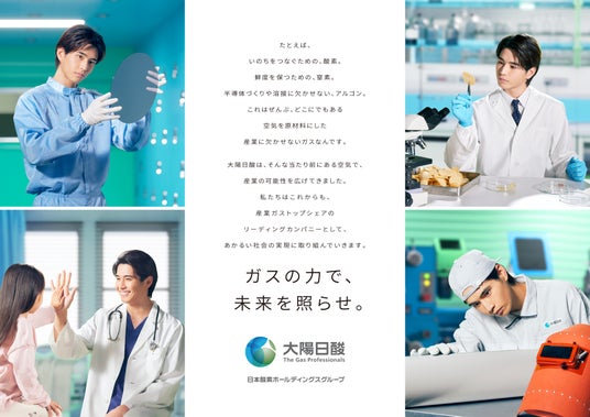 日本酸素ホールディングスグループの日本産業ガス事業会社である大陽日酸株式会社(本社:東京都品川区 代表取締役社長:永田 研二、以下、当社)は、ブランディング活動の一環として、俳優の中沢元紀さんを起用した新しいブランディングムービーを制作しました。ムービーでは当社と関わりのある産業の様子を中沢さんが演じることで、明るくコミカルな内容に仕上がっています。ムービーは当社のWebサイトやSNSで閲覧できるほか、10月中旬以降からは首都圏沿線の電車内ビジョンのほか、Web広告でも放映する予定です。また、ムービーと同じコンセプトのグラフィック広告も今後各所で展開します。