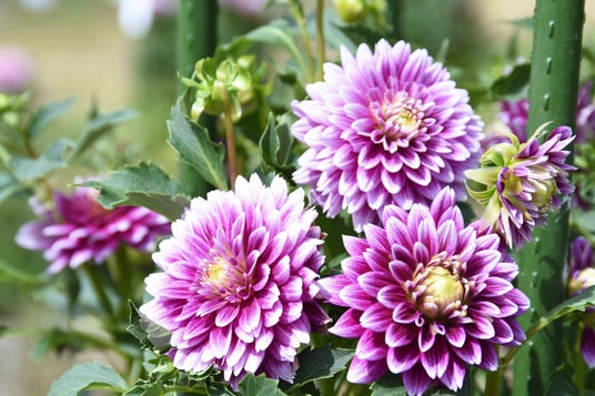 花は、直径5センチ以下のポンポン咲きから超巨大輪のものまである。形も丸いボール状の形をした物など様々。