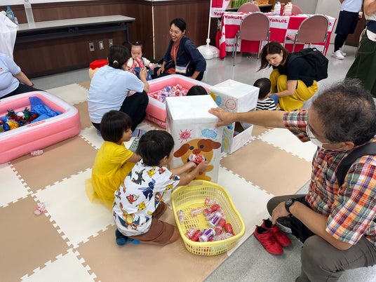 事前予約の2部制での開催でしたが、開場前より受付に並ぶファミリーも多く、開場後には長蛇の列ができたブースもありました。今回はベビーマッサージや手形アートなど過去回でも人気のブースに加え、カスタムクレヨンワークショップやバランスボールエクササイズ、パパ向け育児講座などが初出展。パパ向け育児講座では、パパから積極的に家事や育児に参加したいという熱意や、ママを思いやる発言も聞かれました。縁日ブースではヤクルトの空容器を活用したSDGsの取り組みも実施。また、事前に予約をした限定100組様には企業からの協賛品が詰まったお土産をプレゼントし、受け取った参加者が充実した内容に驚く様子も見受けられました。