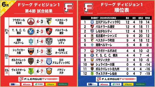6月21日(金)~23日(日)の3日間で実施されたFリーグ2024-2025 ディビジョン1 第4節の6試合について結果をお知らせいたします。
