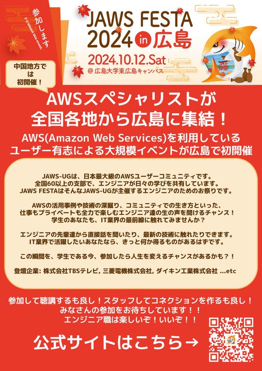 AWS(Amazon Web Services)スペシャリストが全国から集うイベントが広島大学東広島キャンパスで開催されます。