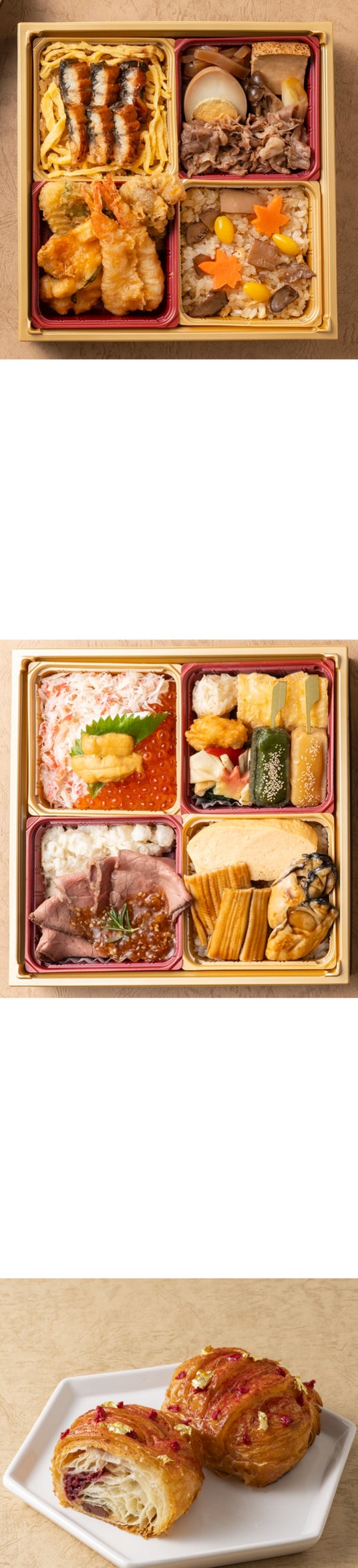 絢彩のカニ・いくら・ウニがのった海鮮丼をはじめ、「梅の花」の豆腐しゅうまいなど人気惣菜の詰め合わせ、「エクリュ」の炭火で香ばしく仕上げたローストビーフ、「大徳寺 さいき家」の京風だし巻きと煮穴子や牡蠣を贅沢に盛りつけたごはんが堪能できるお弁当。4ブランドの人気商品を詰合せ、新たな発見や組み合わせも楽しめます。
