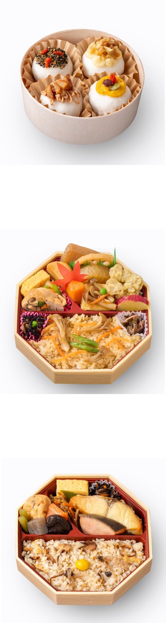 人気の銀ひらす西京焼、秋鮭醤油こうじ焼の二種類の焼魚と、秋らしいきのこごはんを合わせた季節感満載のお弁当。旬の味わいを一口ごとに感じられる、贅沢な一品です。