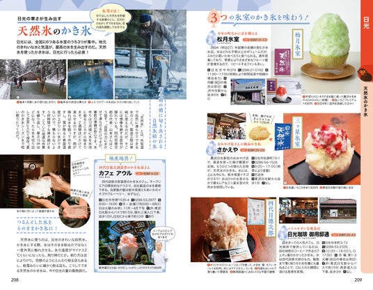 日光ページには「天然氷のかき氷」「立ち寄り湯」など各エリアで展開する小特集も必読