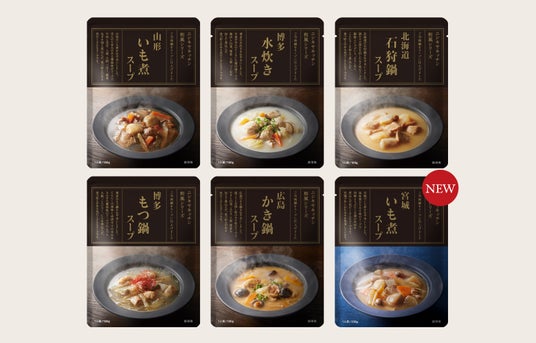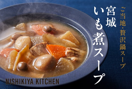 「世界の料理を『カンタン』に。」をコンセプトに掲げ、レトルトカレーやスープなどを販売するレトルト食品専門店NISHIKIYA KITCHEN(ニシキヤキッチン)(株式会社にしき食品 本社:宮城県岩沼市、代表取締役:菊池洋)は、2024年10月3日(木)より「冬季限定」で日本各地のご当地鍋を味わえる和風スープのシリーズから待望の「宮城いも煮スープ」を新発売します。ニシキヤキッチンの冬季限定和風スープは、手作りの鍋を、1人分取り分けたような具だくさんなスープで、鍋料理を作る手間をかけず、温めるだけで食べられます。これまでに5種類を販売しており、今回発売の「宮城いも煮スープ」を合わせると全6種類になります。昨年も発売した「山形いも煮スープ」・「北海道石狩鍋スープ」・「博多水炊きスープ」・「博多もつ鍋スープ」・「広島かき鍋スープ」の5商品も冬季限定で10月3日より販売を開始します。「山形いも煮スープ」は2022年より販売していましたが、宮城県の会社として、宮城のいも煮もシリーズに加えたいという想いと、地元宮城の原料を使いより宮城らしさを出したいと考え、待望の新発売となりました。さらに、ニシキヤキッチン公式Xでは、宮城いも煮スープの発売を記念して、いも煮食べ比べセットが当たる「ニシキヤキッチン芋煮バトル」も開催しています。