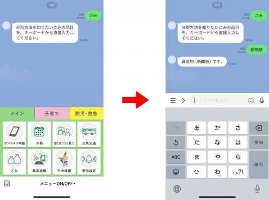 画面下部に固定されている「メイン」「子育て」「防災・救急」の3つのリッチメニューから、各種情報が掲載されているWebサイトに遷移することができます。従来はホームページを検索し、該当ページにアクセスすることで得ることができた情報ですが、今後はLINEのトーク画面から手軽に情報源にたどり着くことができます。