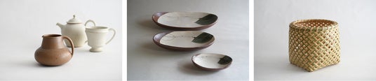 東京日本橋で工藝ギャラリー「ヒナタノオト」を営み、ものづくりを次世代へ「つなぐ」稲垣早苗氏と茅葺き屋根をはじめ、竈や籠づくり、食についても、先人の知恵と技を現代に「つなぐ」茅乃舎、双方の想いが一致し企画された本展。会場では、作品とともに「つながるバトン」をテーマに作家自らが筆をとった文章も展示されます。是非この機会に、工藝のバトンをつなぐ6名の作家の作品をお手にとってご覧ください。