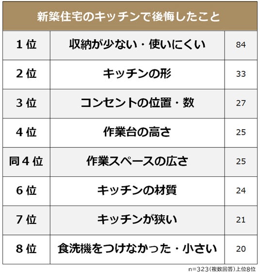 ・新築のキッチンで後悔したこと1位は「収納が少ない・使いにくい」
