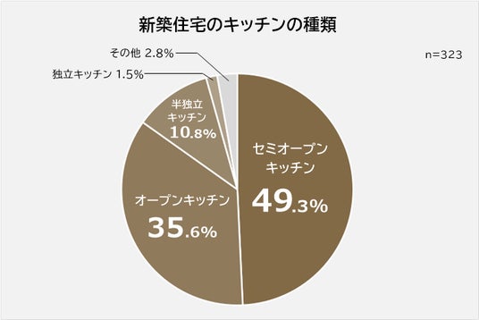 新築住宅のキッチンは約5割が「セミオープンキッチン」