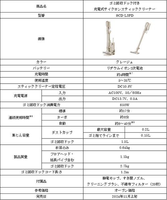 アイリスオーヤマ株式会社(本社:宮城県仙台市、代表取締役社長:大山 晃弘)は、軽量ながら強力な吸引力を実現した、充電式スティッククリーナー MagiCaleena(マジカリーナ)シリーズの新商品として、1.5Lの大容量ゴミ回収ドックにより、最大90日間(※1)ゴミ捨て不要な「ゴミ回収ドック付き充電式サイクロンスティッククリーナー」を2024年11月上旬より全国の家電量販店を中心に、インターネットサイトなどで順次発売(※2)します。