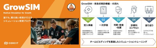 (注3)GrowSIM(グロウシム):CERCITと東北大学の産学連携プロジェクトによって開発された、診療に必要な能力獲得とチーム医療トレーニングを効果的に行うと同時に、指導者の負担を軽減できるシミュレータ及び周辺機器を活用した教育プログラム。