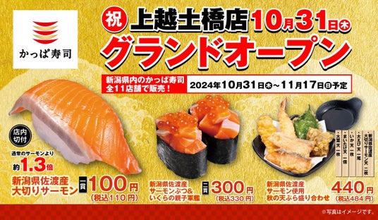 新潟県内の新店舗オープンを記念して、新潟県内のかっぱ寿司全11店舗対象で、新潟県佐渡産サー