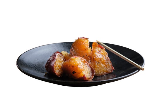 炭焼き芋は10月31日から11月4日までの期間限定で初登場となる注目メニュー。糖度の高いさつま芋を素揚げし秘伝の焼き鳥のたれに潜らせながら炭火で香ばしく焼き上げた、鳥しきならではの逸品です。