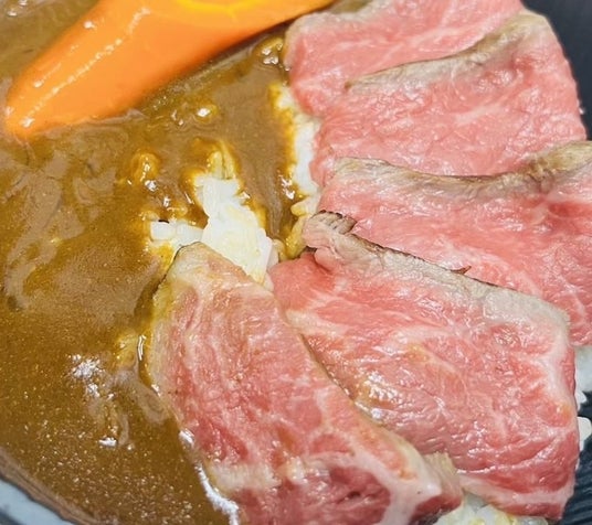 極上A5ランクの黒毛和牛の肉のうまみとこだわりスパイスがきいた本格派カレー!味わい深いニンジングラッセ添え!