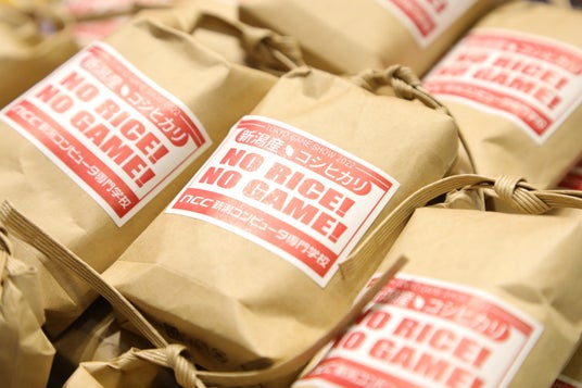 来場者特典として姉妹校「新潟農業・バイオ専門学校」の学生が栽培したコシヒカリを配布しました。