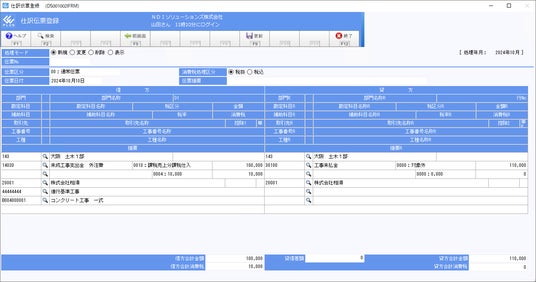 仕訳伝票登録 詳細画面