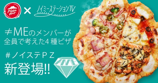 「#ノイステPZ」は、≠MEのメンバーが考えた理想のピザをもとに、ピザハット商品開発チームが商品化に取り組み、2ヶ月の試行錯誤を経て誕生。4チームに分かれたメンバーが、それぞれ理想のピザを考えてたどり着いた4種類のピザを1枚に組み合わせた、4つの味を楽しめるスペシャルなピザが完成しました。