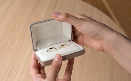 リングケースはあくまで“主役である指輪”を引き立てる為のものであるということを再確認し、婚約指輪用、結婚指輪用共にナチュラルカラーのスエードを用いたケースに仕立てました。