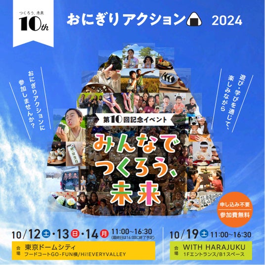 「おにぎりアクション」は、個人が「おにぎり」の写真を投稿するというシンプルな行動で、世界の食料問題への気付きを持ち、その解決に参画できる社会貢献活動です。10年目の節目を迎える今年は、未来を担う子どもたちや若い世代の皆様に食料問題について関心を持ってもらい、積極的に関わっていただく機会の創出に力を入れています。おにぎりアクション10年目を記念して6年ぶりにリアルイベントを実施。
