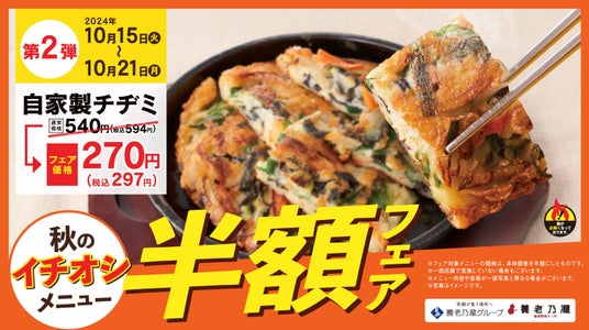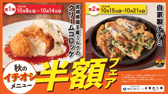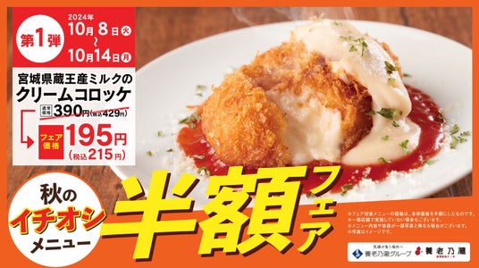 養老乃瀧株式会社(東京都豊島区、代表取締役 矢満田 敏之)は、「養老乃瀧」において行われる10月8日(火)のメニュー改定に伴い、『秋のイチオシメニュー半額フェア』を開催いたします。本フェアでは、対象の新メニューについて、期間中、通常価格の半額で提供いたします。