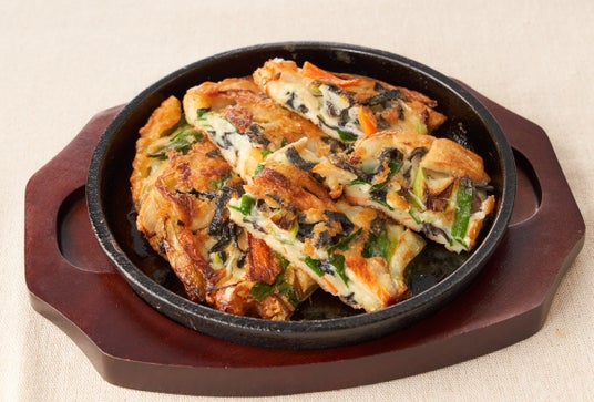 お店で生地から作り上げたサクサク、モチモチの食感が特徴のチヂミ