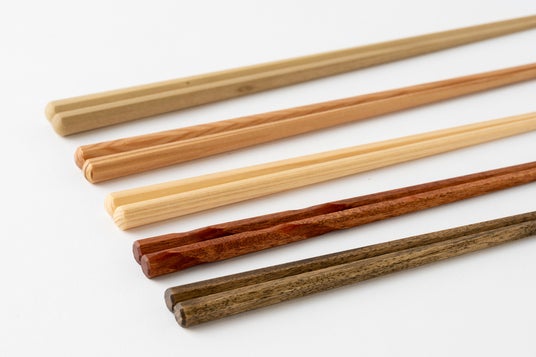 日本の銘木を使った、自然の木色を活かした箸。飛騨の朴(ほう)・紀州の桧(ひのき)・信州の唐松(からまつ)・東京の山桜(やまざくら)・秋田の斧折樺(おのおれかんば)の5種類。