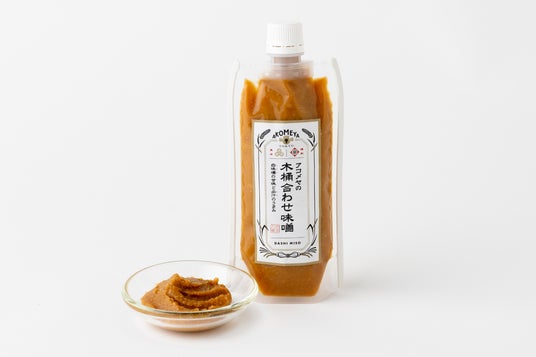 木桶づくりから始まった「アコメヤの木桶味噌」が、手軽に使える合わせ味噌になりました。口当たりまろやかな、程よい甘さでやさしい味わいです。かつお、昆布、あごの出汁入り。液味噌として簡単に味噌汁が作れます。その他、炒め物、つけ味噌など簡便味噌としてお使いいただけます。